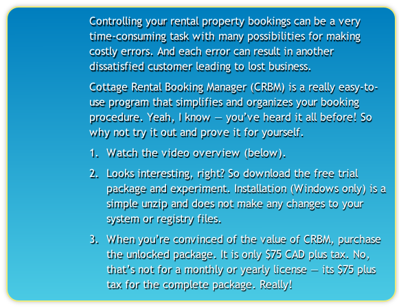 After using the trial package to ensure that CRBM will work for your rental situation,
